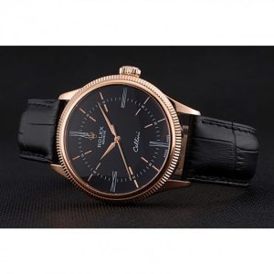 Replika órák Rolex Cellini Time Rose Gold Case Black Dial Black Leather Bracelet 622656