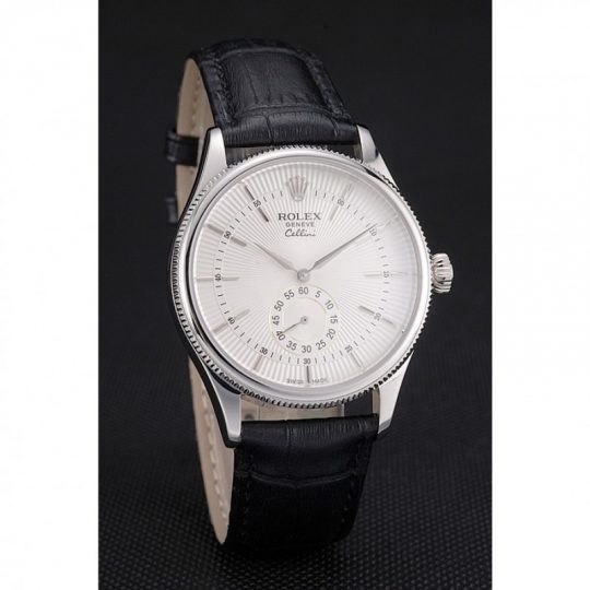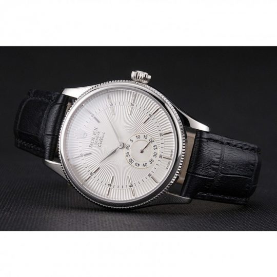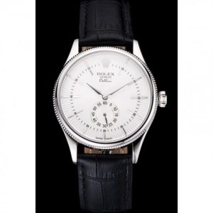 Replika órák Rolex Cellini White Dial Stainless Steel Case Black Leather Strap