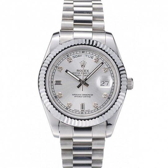 Replika órák Rolex DayDate Stainless Steel Ribbed Bezel Silver Dial 41995