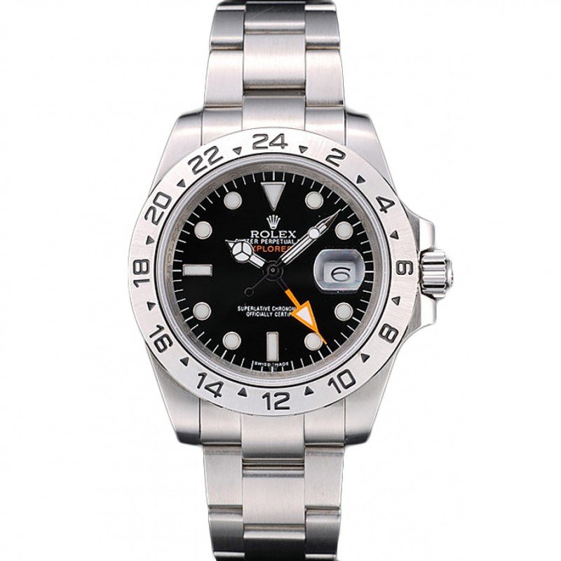 Replika órák Rolex Swiss Explorer Stainless Steel Bezel Black Dial Watch